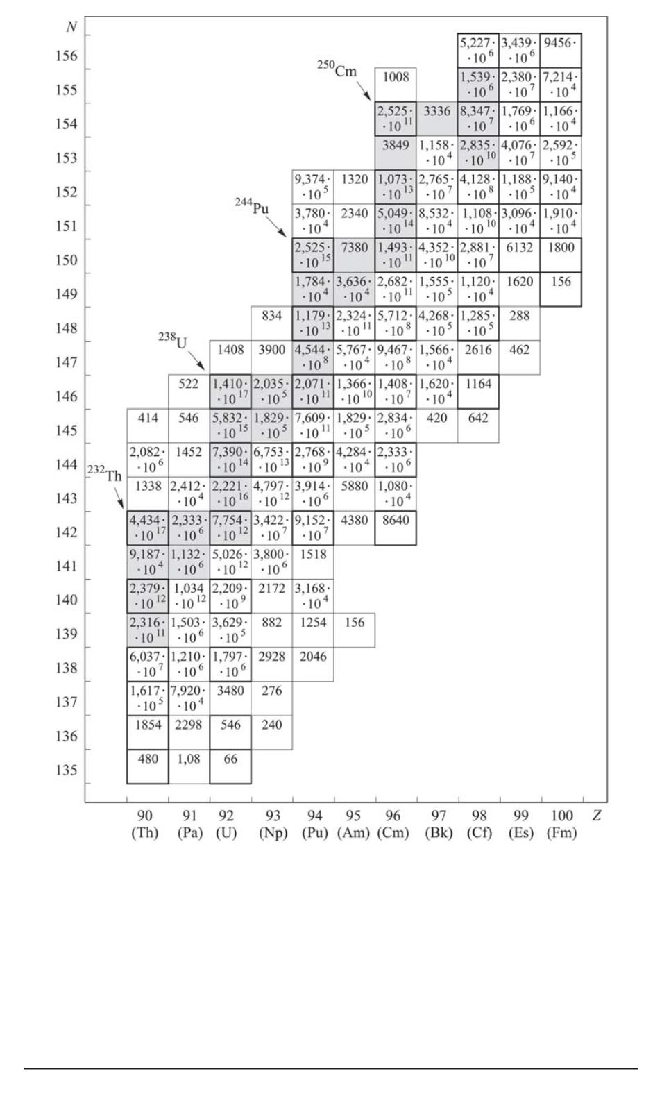 приведены в секундах [7]; нуклиды, преимущественно