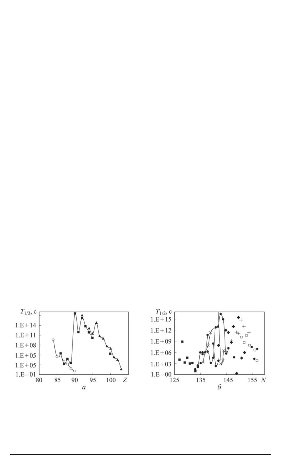 тронами; — изотопы плутония; + — изотопы кюрия; — изотопы калифорния;