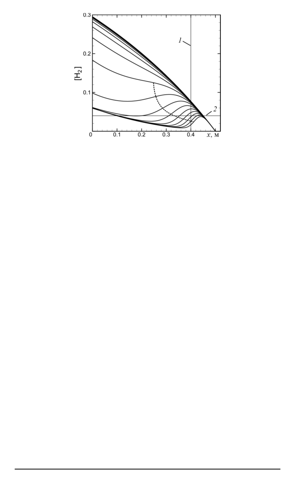 точке 0,4 м). На рис. 3 видно, что когда фронт реакции располагается