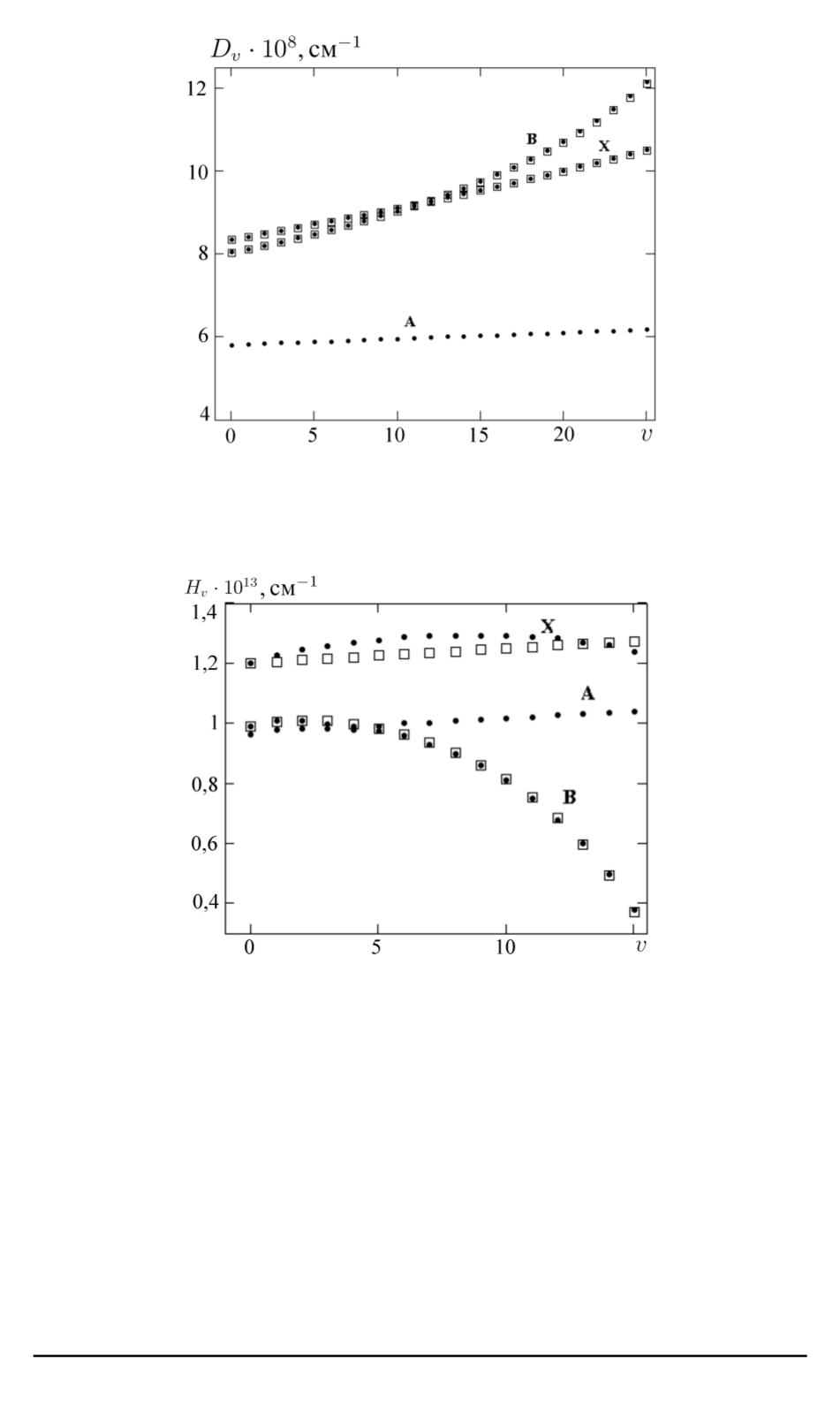 Рис. 2. Результаты расчета (обозначены точками) центробежных постоянных