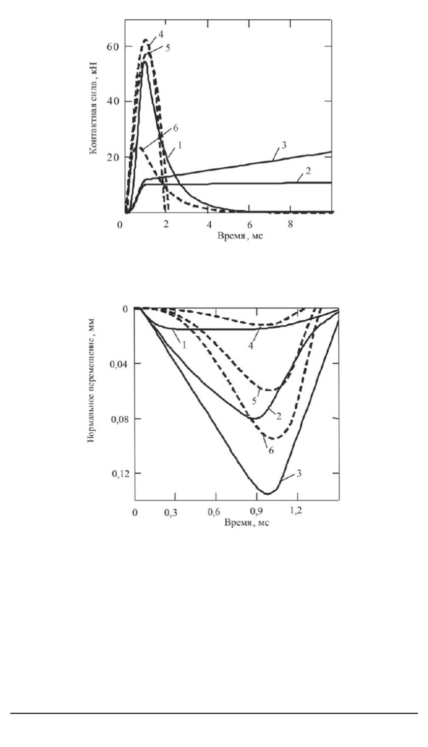 Рис. 2. Зависимость контактной силы от времени для различных значений